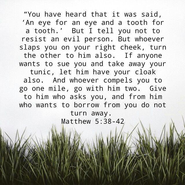 ‘You have heard that it was said, ‘Eye for eye, and tooth for tooth.’ But I tell you… If anyone slaps you on the right cheek, turn to them the other cheek also…’ – Jesus