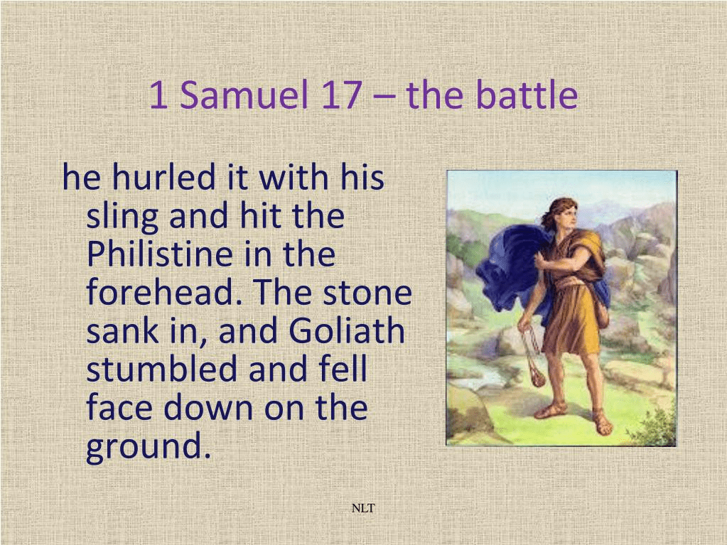 The Bible narrative continues with the teenage, shepherd-boy David, equipped with a sling and stones, defeating the giant, well-armoured, experienced soldier Goliath. David’s victory is a great example of not judging by appearances… of not jumping to conclusions regarding an ‘inevitable’ outcome