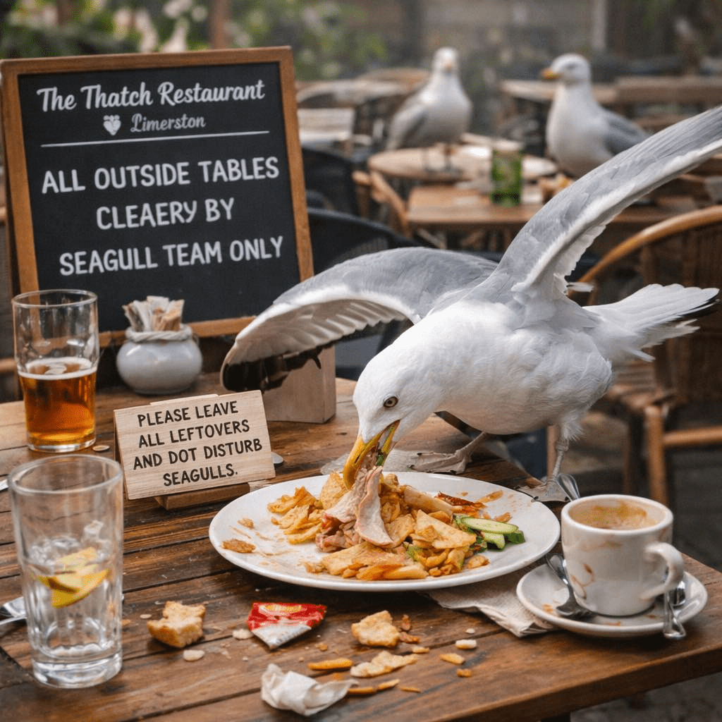 On Wednesday we were informed:Due to ongoing cost pressures and the recent April wage increase, we’ve had to make some operational changes… From today, all outside tables will now be cleared exclusively by our new team of highly trained seagulls… Our seagull team are fast, efficient, and extremely motivated.