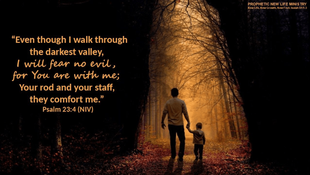 I remember: ‘Even though I walk through the darkest valley, (the valley of the shadow of death) I will fear no evil, for you are with me…’