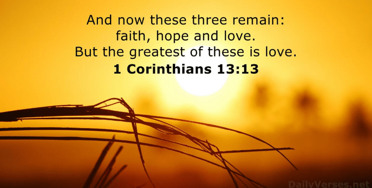St Paul says: ‘Now we see things imperfectly, like puzzling reflections in a mirror, but then we will see everything with perfect clarity. All that I know now is partial and incomplete, but then I will know everything completely, just as God now knows me completely. Three things will last forever—faith, hope, and love—and the greatest of these is love.’